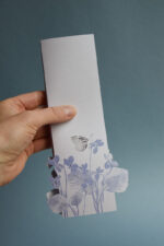 Přání na Italském grafickém papíru s barevným potiskem a laserovým výsekem. Balení obsahuje transparentní obálku velikosti 22x11cm s ručním razítkovým potiskem. Pro snadné psaní je zadní strana přání potištěna linkami.