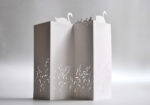 Přání na Italském grafickém papíru s laserovým výsekem. Balení obsahuje transparentní obálku velikosti 22x11cm s ručním razítkovým potiskem. Pro snadné psaní je zadní strana přání potištěna linkami.