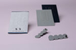Náušnice z italských grafických papírů o celkové gramáži 500. Oboustranné stříbrno-tmavě modré, pecky z chirurgické oceli.