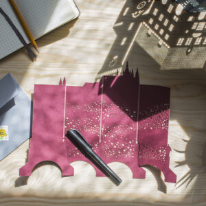 Přání na Italském grafickém papíru se stříbrným potiskem a laserovým výsekem. Balení obsahuje stříbrnou obálku velikosti 22x11cm s ručním razítkovým potiskem.