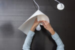 One fold is enough to create a minimalist elegant lampshade from metallic graphic paper. Two lampshades of the size 51×36 cm in one pack. Fits a 4,5 cm diameter lamp holder.