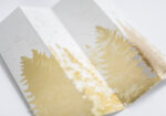Golden foil printed and laser cut card on high-quality Italian graphic paper. Packing includes a 22 x 11 cm dark blue envelope with a hand-printed stamp. Empty lines at the back of the card for easy writing.